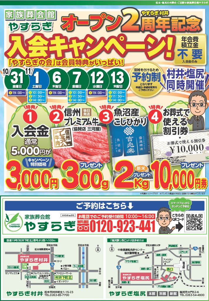 松本・塩尻のお葬式・ご法要は家族葬会館やすらぎへ